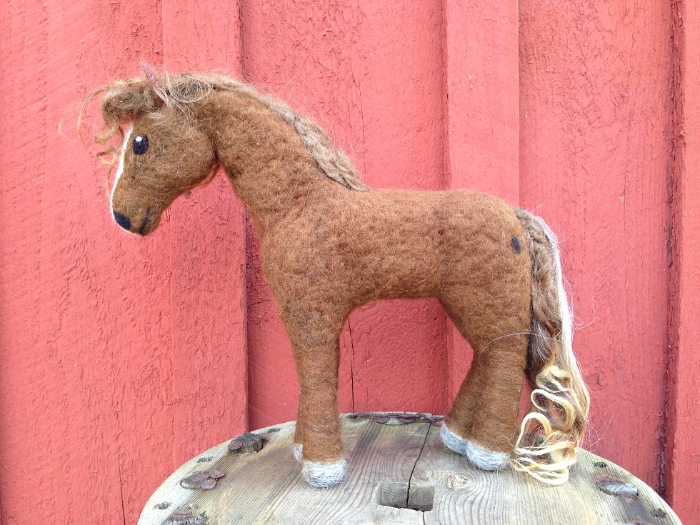 Quarterkille nåltovad efter foto. Massiv ull. Ca 20 cm hög. Finull, värmlandsull samt Spelsau. Såld